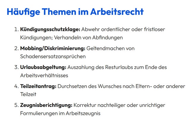 Weitere Schwerpunkte ergeben sich in Bremen, Hannover, Nürnberg, Leipzig und Dresden, wo Kündigungsschutzklagen, Abfindungsverhandlungen und die Planung des nächsten Karriereschritts im Vordergrund stehen. Auch in Karlsruhe, Mannheim, Augsburg und Wiesbaden geht es häufig um wirtschaftlich tragfähige Lösungen nach dem Jobverlust.