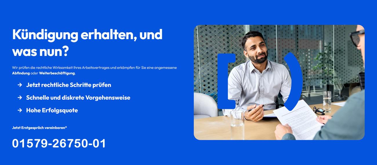 Wenn das Arbeitsverhältnis endet – ob durch Kündigung, Aufhebungsvertrag oder betriebliche Umstrukturierung – ist das eine kritische Phase: Einkommen, Zukunft und persönliche Sicherheit stehen auf dem Spiel. Kündigung-Abfindung.de begleitet Arbeitnehmerinnen und Arbeitnehmer bundesweit in Deutschland durch jede Phase des beruflichen Umbruchs. Unser Fokus liegt darauf, Ihre Rechte klar herauszuarbeiten, Fristen zuverlässig zu sichern, Abfindungschancen realistisch zu bewerten und Ihre Ansprüche strategisch sowie wirtschaftlich sinnvoll durchzusetzen.